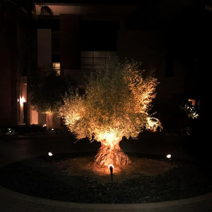 The process is well considered and we take all the care in the world that the tree is well placed and perfectly planted. Like this recent old and beautiful olive tree that found a new home and quiet literally is now the centre of attention (with some spotlights to keep it in the limelight even at night).
