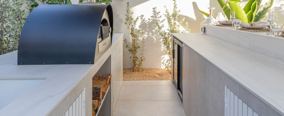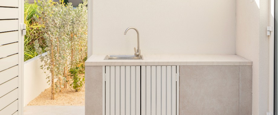 This is where outdoor storage solutions make a real difference, - doors underneath counters and swimming pool boxes will help to keep smaller items (like soccer balls, toys and smaller garden tools as well as your barbeque equipment) out of the way.