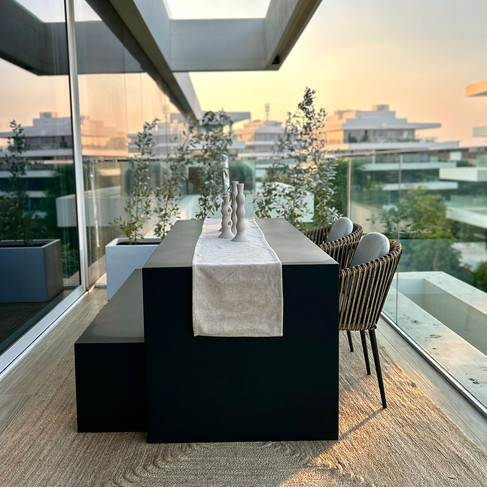 We often show you landscaping projects where Gin turns ideas into tangible solutions for clients, but we thought to share this - a much smaller project, tackled with just as much passion. Selected furniture and finishing like all-weather rugs and sturdy outdoor furniture hold up to winds and other intense weather. The rugs and upholstery bring in natural texture and elements and a warm but clean ambiance.