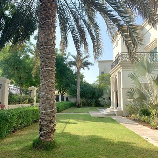 The lawn and paving is neat and keep the focus on the grand arched entrance, while the flower beds to the side adds height and interesting mix of greens. We especially love the Bismarck Palms’ (Bismarckia nobilis) blueish silver colours with its gorgeous stiff, waxy leaves. It creates length, density and colouring.
